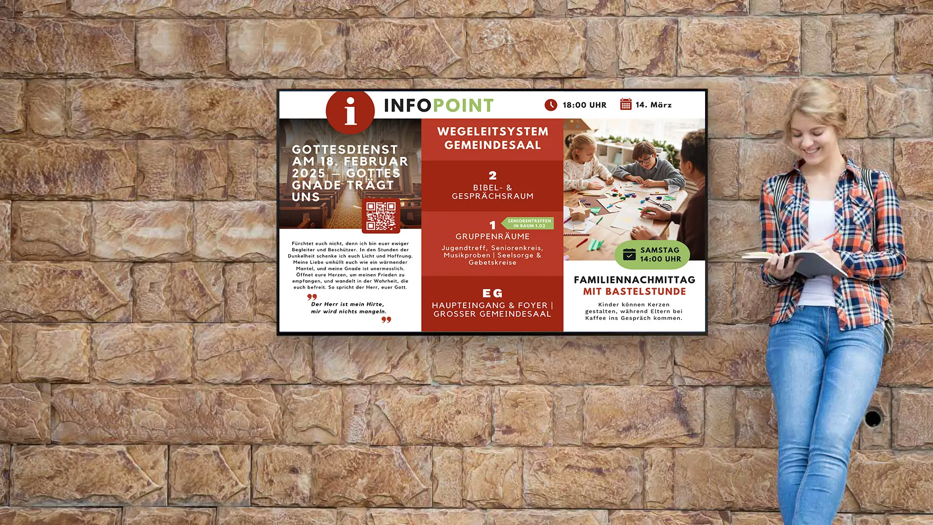 Digital solutions can help simplify life in society in many areas. Whether in public institutions, educational institutions or in churches - our multimedia solutions improve communication with your community members and visitors and daily work.